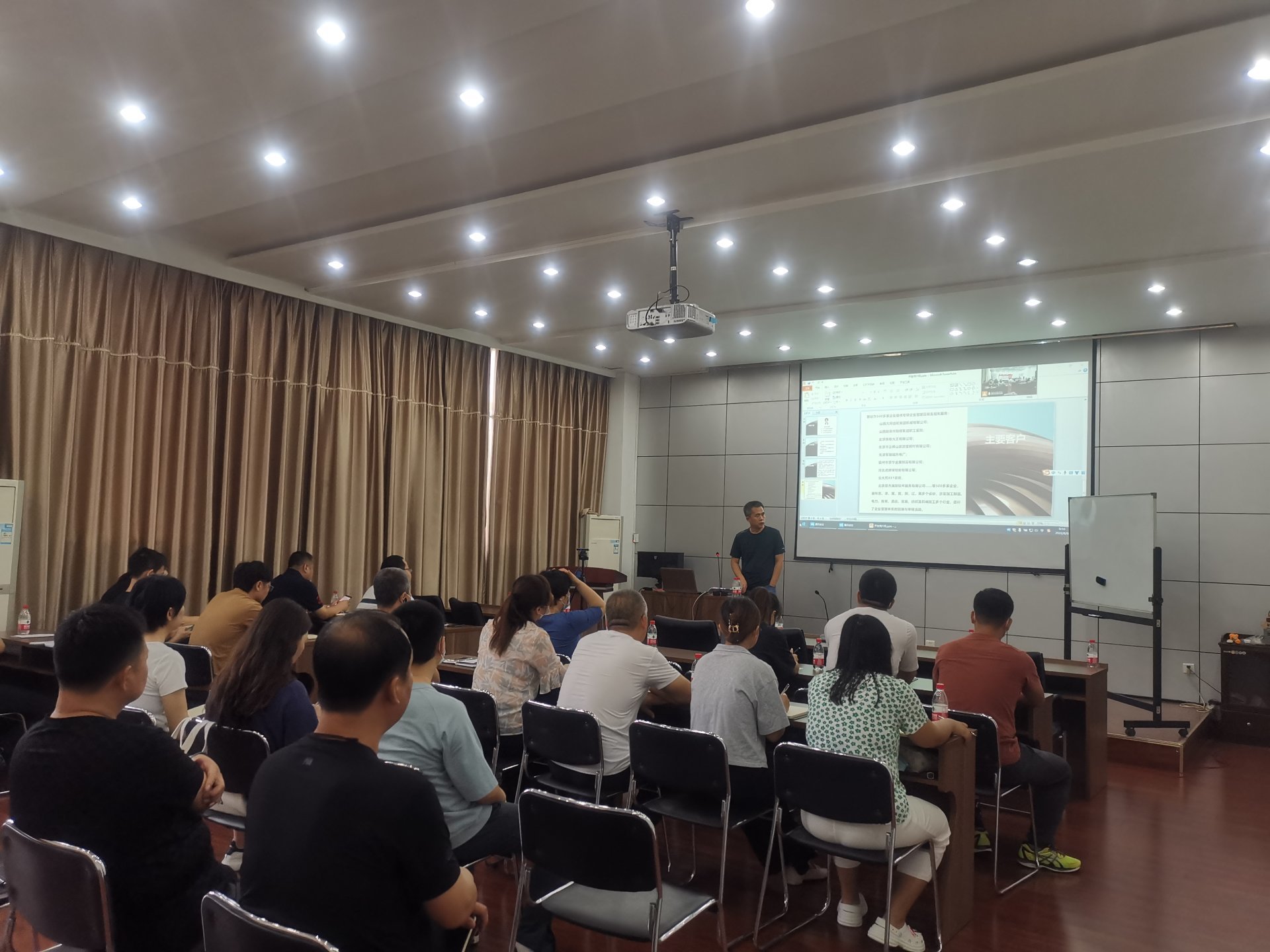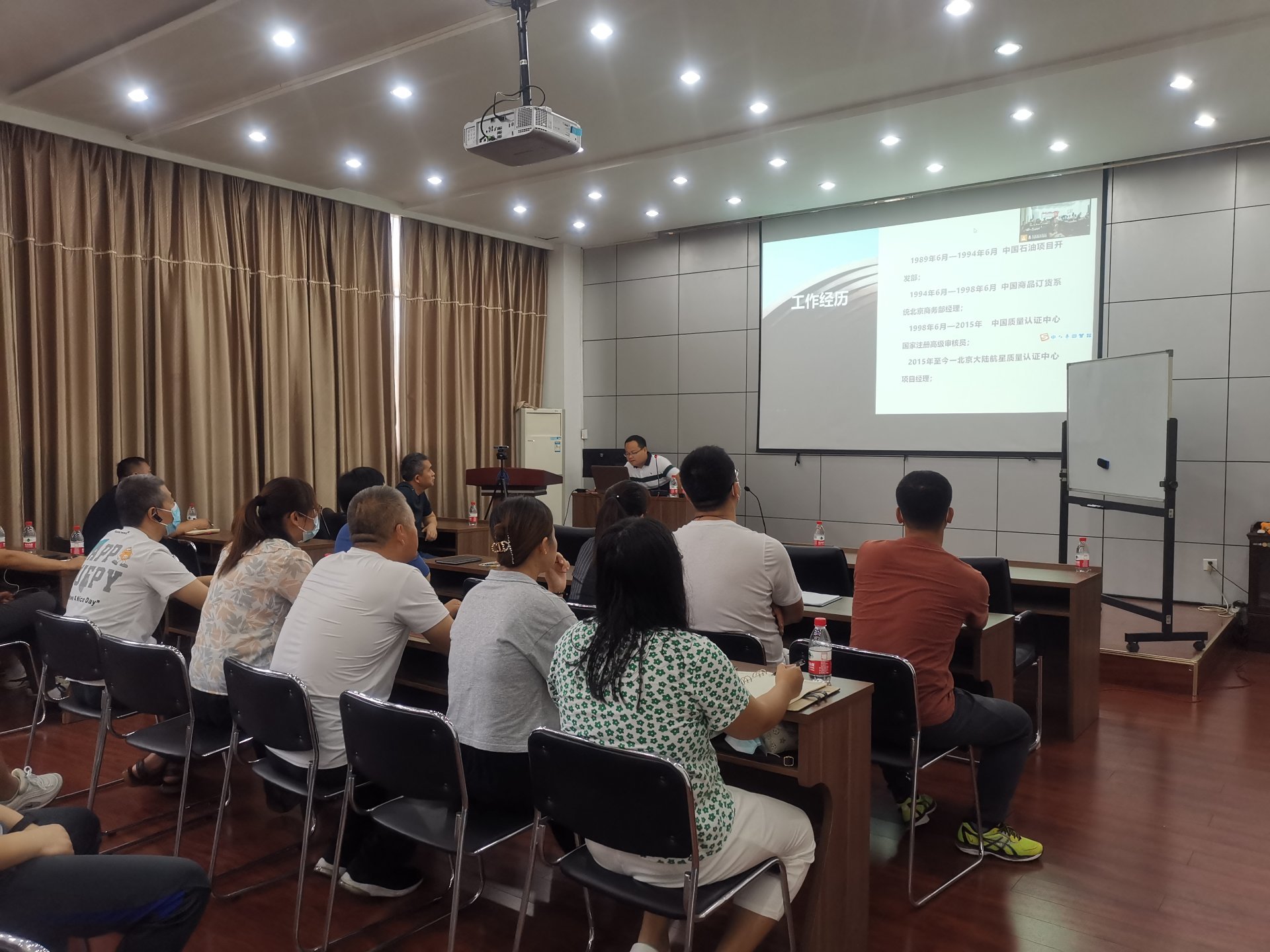 培訓前物資質量部部長曹國巍介紹了齊永合老師的工作履歷,以及大陸航星在企業管理模式設計、人力資源體系中薪酬和績效、營銷、生產管理、資本經營等領域的成功培訓經驗。