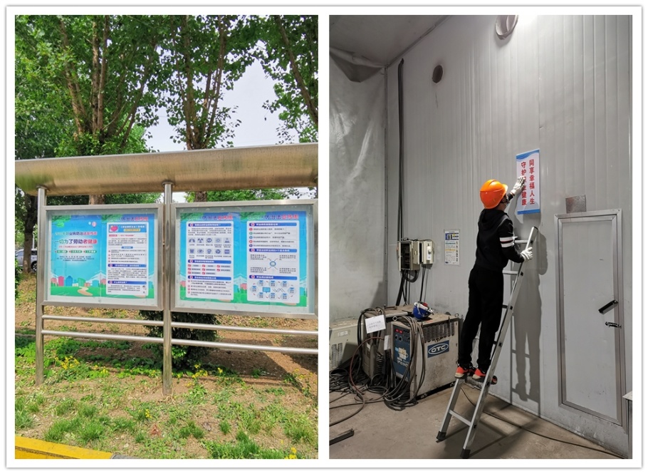 01 在生產基地宣傳欄張貼職業病防治宣傳海報、在車間和職業危害崗位張貼職業健康宣傳板,向廣大員工展示此次宣傳周活動主題和職業病防治知識。