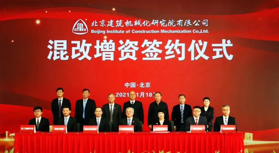 1月18日上午,中國建研院所屬北京建筑機械化研究院有限公司(下稱“北京建機院”)“雙百行動”混改增資簽約儀式成功舉行。