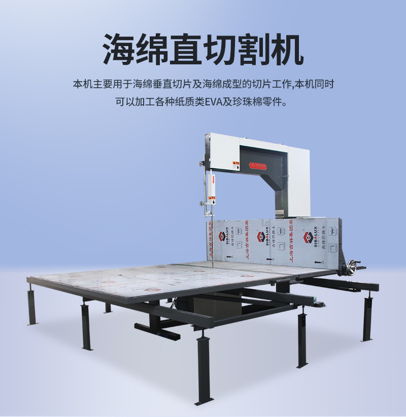 1.本機主要用于海綿垂直切片及海綿成型的切片工作,本機同時可加工各種紙類EVA及珍珠棉零件。