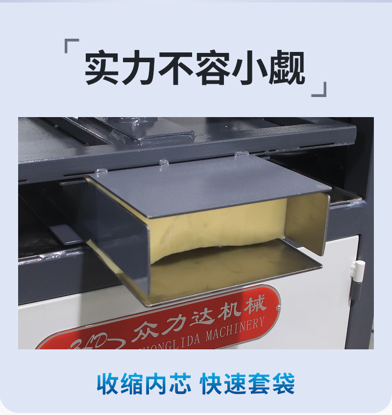 2.整機(jī)操作簡(jiǎn)單便捷,操作步驟:內(nèi)芯裝機(jī)、收縮內(nèi)芯、套袋上機(jī)、內(nèi)芯回彈、頂出封口等。