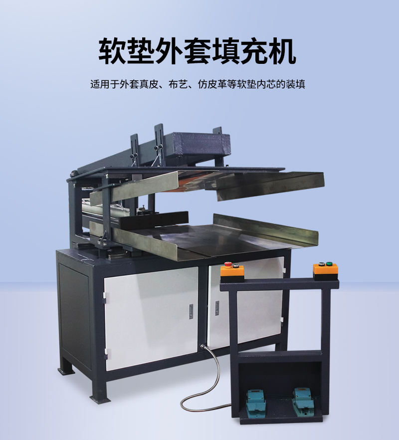1.軟墊外套填充機(jī)適用于外套真皮、布藝、仿皮革等軟墊內(nèi)芯的裝填, 針對(duì)于人工套袋費(fèi)時(shí)費(fèi)力而且套袋效果不平整的情況下,這款機(jī)器解決了以上難點(diǎn)。