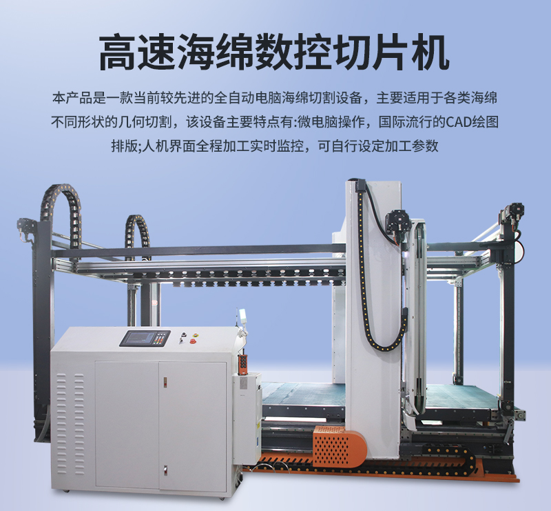 1.海綿高速切片機為循環(huán)刀,具備強大的切割能力,可實現(xiàn)高效切片任務并可以無縫對接其它設備實現(xiàn)自動流水線作業(yè)。