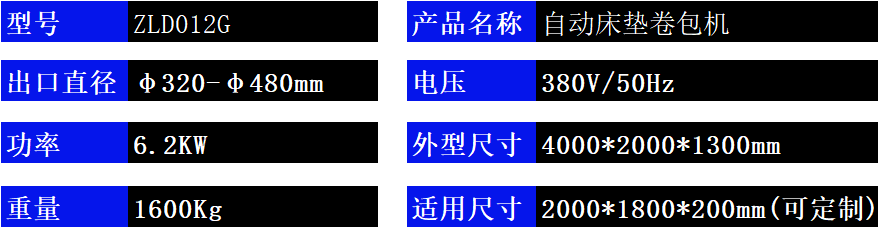 1.該機適用于密度小于等于30kg/m3的海綿床墊或等同硬度彈簧床墊的卷壓包機。2.它具有以下幾個優點:生產效率高,35-40秒鐘完成裝袋;操作簡單,只要放好床墊和被子,按動一個按鈕即可自動完成操作;一般工人5分鐘學習即可熟練操作機器;包裝成本低,每張床墊只需要一個直徑約380mm的PVC袋或PE袋。3.卷壓后床墊體積大大減小,從而大幅度降低產品運輸及倉儲成本,整機結構緊湊簡潔,安裝維護方便。